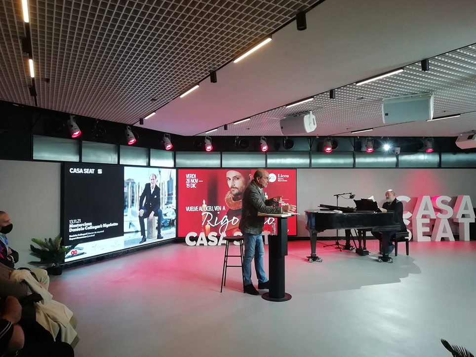 El reconocido director de orquestra y líder de la ópera Rigoletto, Daniele Caleggari, impartió este viernes en CASA SEAT una masterclass acompañado por uno de los pianistas de la producción que se estrenará en el Gran Teatro del Liceo de la Ópera Verdi.