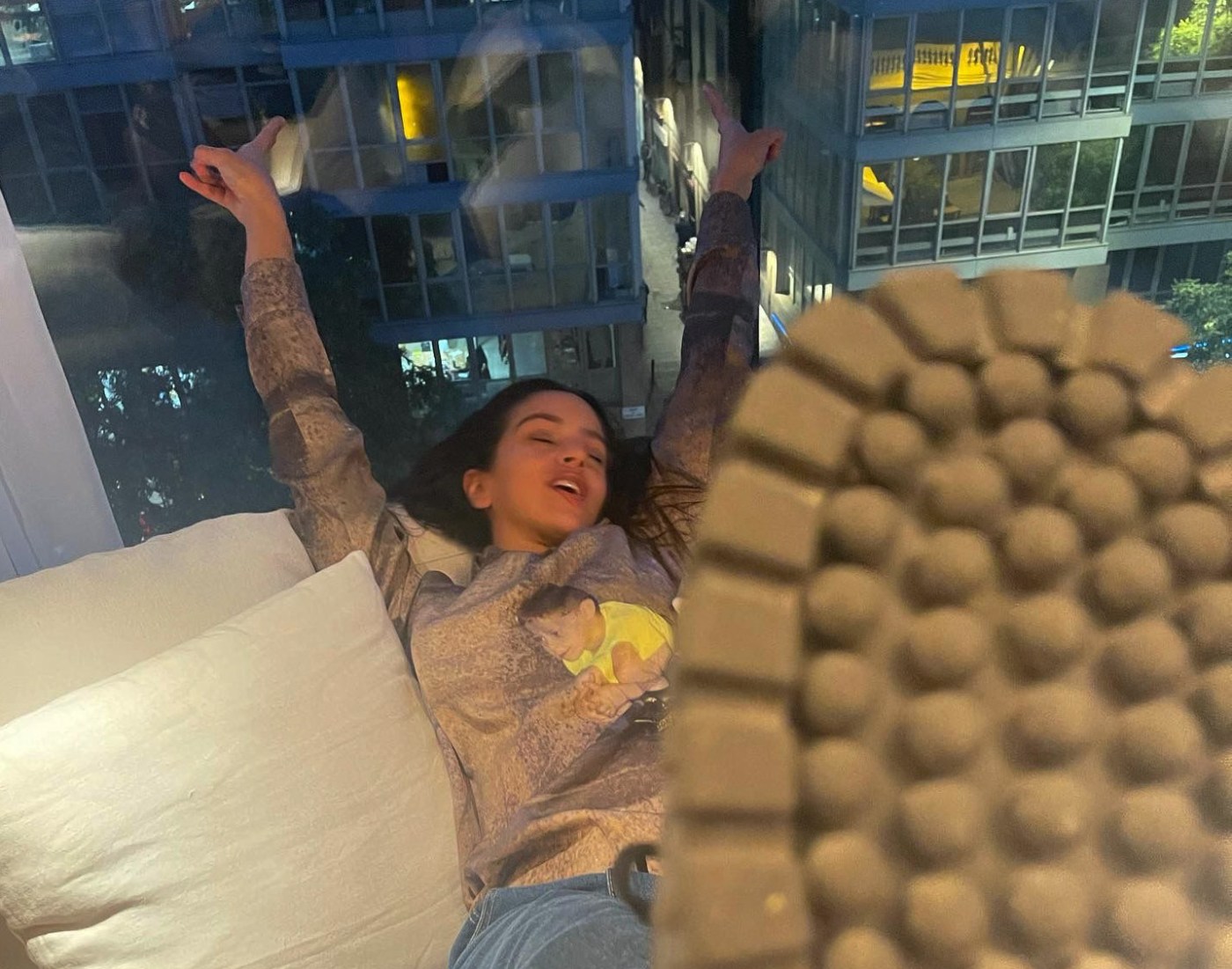 Rosalía ha estado alojada en el exclusivo ático del hotel, disfrutando del incomparable espacio de más de 91 m2 del penthouse cuidadosamente amueblado para ofrecer a sus huéspedes un espacio de paz y tranquilidad con vistas panorámicas al skyline de la ciudad, al barrio del Born y al colorido tejado del mercado de Santa Caterina. El apartamento dispone de una terraza exterior privada de 70m2 totalmente equipada con mesa zona lounge y tumbonas desde las que se puede ver toda la ciudad.