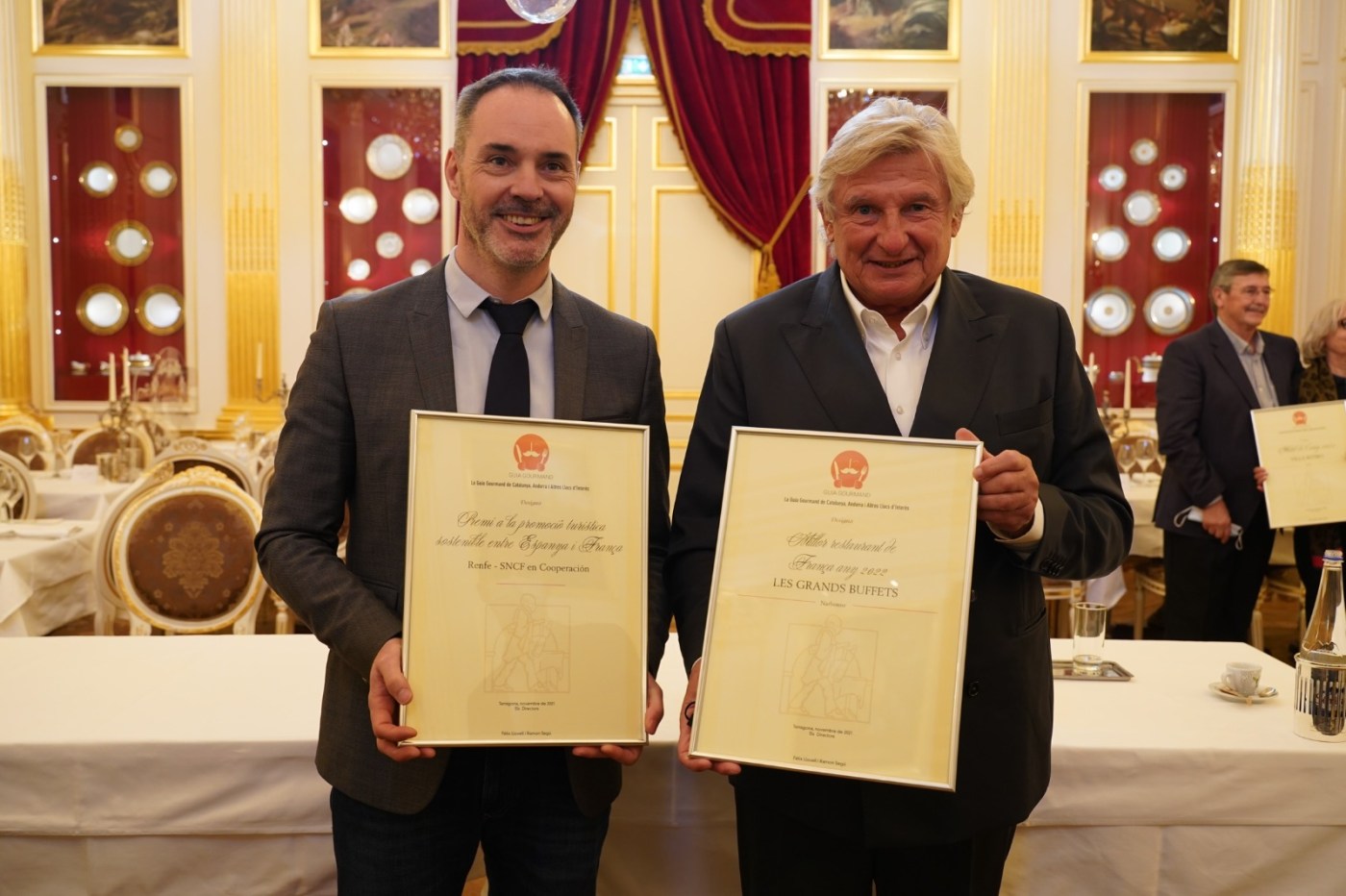 La Guía Gourmand, en la gala celebrada en Narbonne, también ha premiado a los establecimientos con estrella Michelin Hotel Villa Retiro, de Xerta – dos estrellas Michelin, Chef Fran López, una estrella Michelin en el restaurante del Hotel Villa Retiro y una estrella Michelin el Restaurante Xerta de Barcelona- como Hotel del año 2022, el Restaurante Quatre Molins – una estrella Michelin del Chef Rafel Muria- de Cornudella de Montsant como el Restaurante del año 2022 y Renfe–SNCF en Cooperación que ha sido merecedora del Premio a la promoción turística sostenible entre España y Francia del año 2022 y al restaurante Les Grans Buffets como mejor restaurante de Francia por su capacidad de adaptación y transformación convirtiendo el restaurante en un icono a nivel mundial con la ambición de hacer llegar el lujo de una manera accesible a todos los públicos, ofreciendo un amplio repertorio de los platos más icónicos de la cocina tradicional francesa.