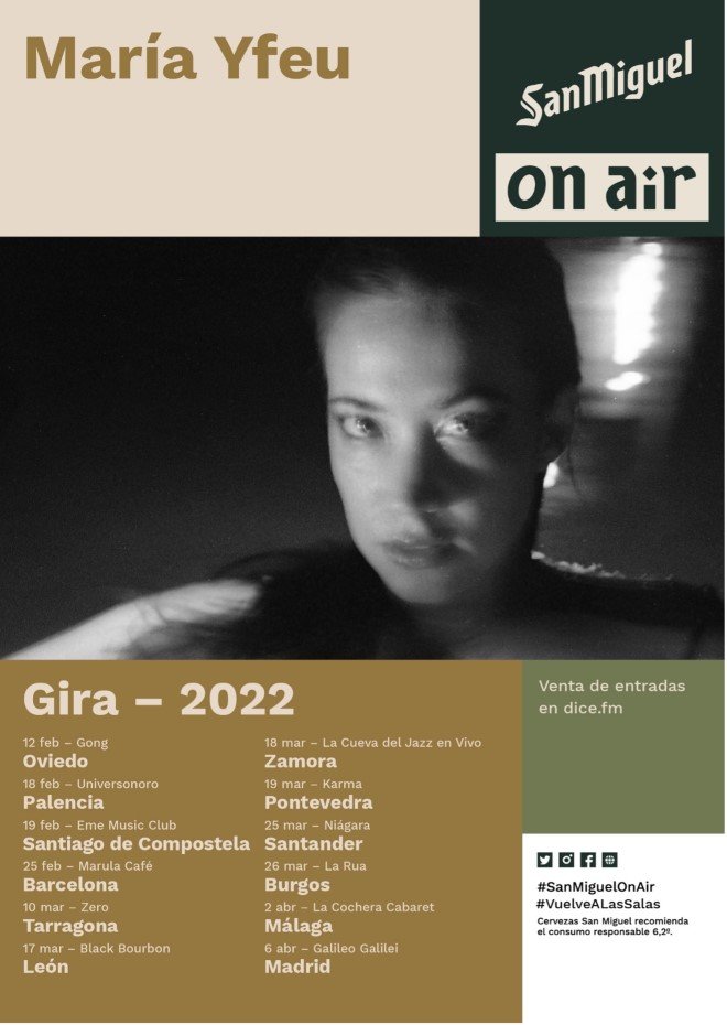 Podremos disfrutar de María Yfeu en directo en su concierto del próximo 23 de diciembre en Madrid, en el Centro de Cultura Contemporánea Condeduque. Las entradas ya están disponibles en la web del evento.