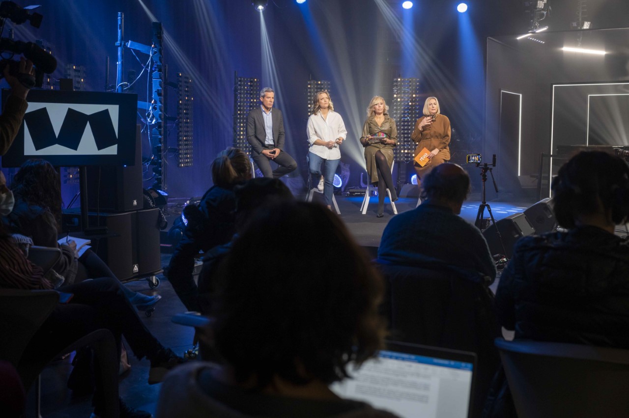 ‘Las tres puertas’, el programa de entrevistas de La 1 con María Casado, se ha presentado hoy en el plató del programa, el estudio 6 del Centro de Producción de RTVE Catalunya. Al acto, conducido por María Eizaguirre, directora de Comunicación y Participación de RTVE, han participado Ana María Bordas, directora de Originales; Oriol Nolis, director de RTVE Catalunya, y María Casado, directora y presentadora de ‘Las tres puertas’.