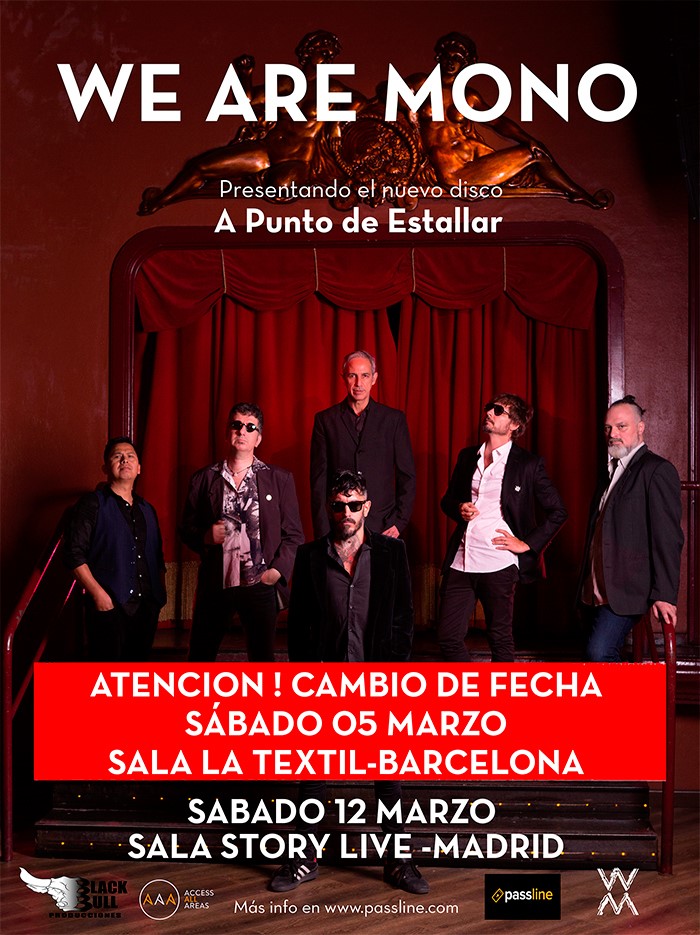 Los barceloneses se muestran intratables encima del escenario con una puesta en escena explosiva e implacable, conectan de manera sorprendente con el público. We Are Mono, formación veterana de la ciudad condal, demuestran en sus composiciones un sonido soberbio planteado desde una base rítmica sólida y penetrante, todo bajo el soporte de guitarras afiladas y perturbadoras que transmiten pasión, locura y contundencia.
