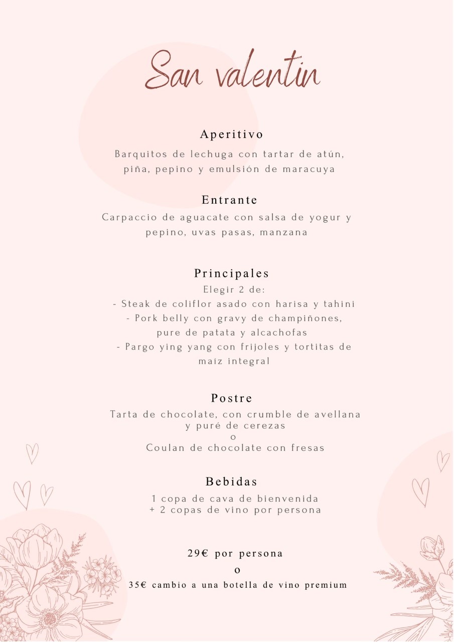 La carta ofrece veinte platos que van cambiando, suculentos y tentadores entre cosas para picar, compartir, platos para aventureros, y dulces postres con opciones incluso crudas y veganas. Entre ellos destacan sus alcachofas deli a la plancha con alioli de ajo negro, la crema de maiz con apio del monte, el pollo crunchy campero con patatas ¡ violeta, salsa BBQ y guacamole con mini mazorcas, el pescadito ying yang con frijoles y tortilla de maiz integral, sus arepitas de avena con tartar de atún; el aguacate asado con manzana, hierbas y yogur; su ensalada de langostinos con brotes y soja; sus rollitos vietnamitas ; la burrata con pesto y tomates cherry; el ceviche de corvina con boniato; el poke con atún, quinoa, arroz y pepino;el shakshouka de tomates y pimientos con huevo y queso feta etc.. Por no hablar de sus delicados postres: el Fat Cheese, la Selva Negra, la tarta de zanahoria o sus sabrosos helados veganos.