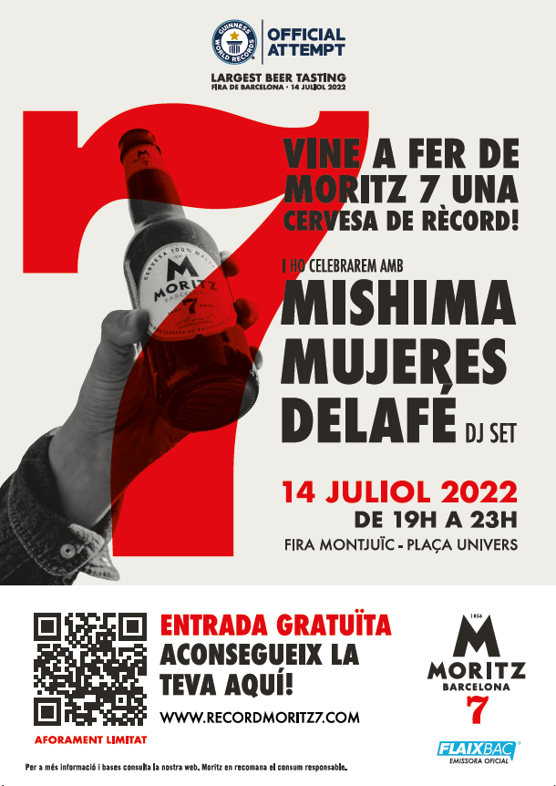 Moritz 7 aspira a ganar el Guinness World Records® de la cata de cerveza más grande del mundo. Un récord que fue conseguido por último vez en Londres (Reino Unido). La cita tendrá lugar el próximo 14 de julio de 19h a 23h en la Plaça de l’Univers, en la Fira de Barcelona.
