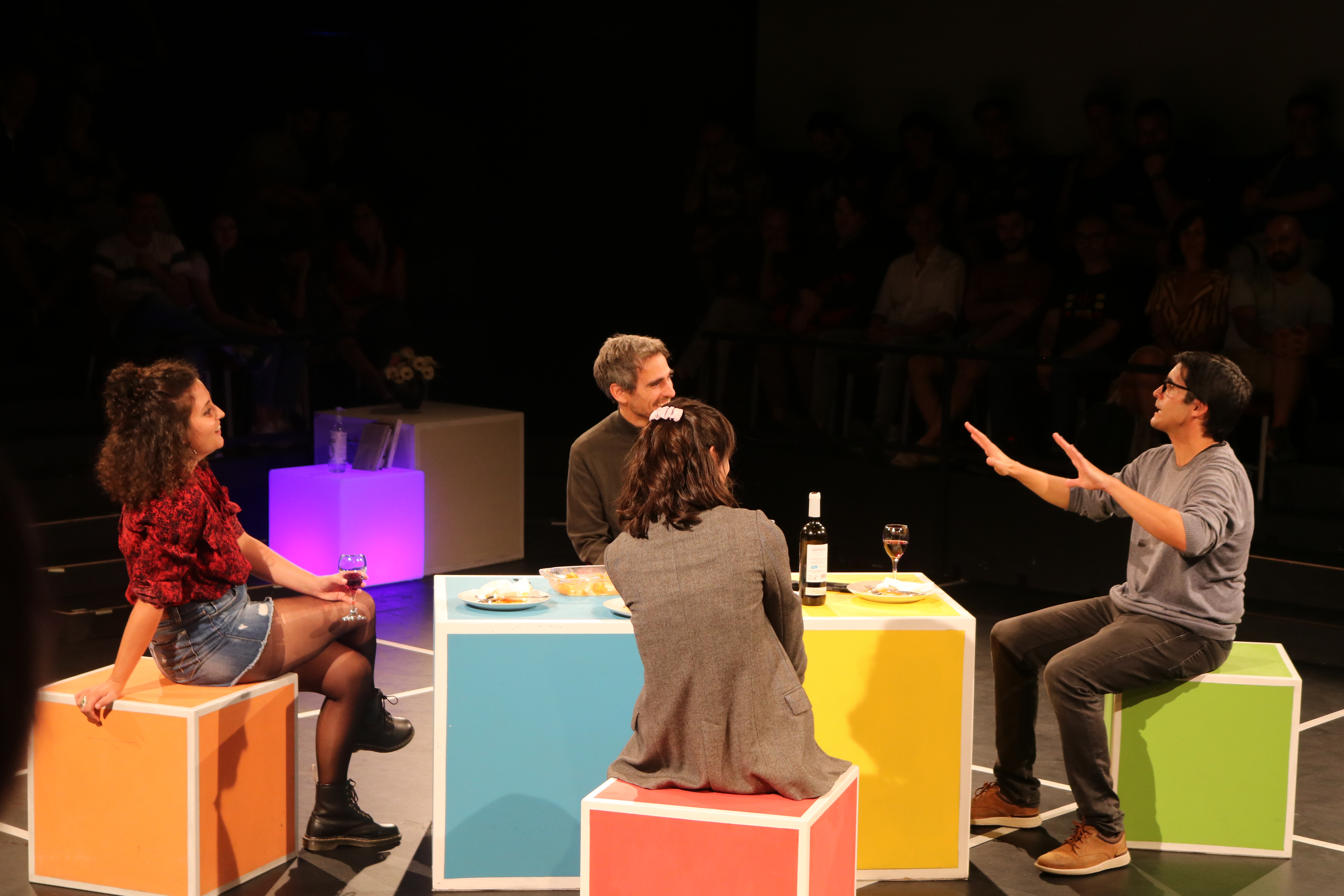 La posada en escena, al llarg del seu desenvolupament, retrata, amb petits detalls, l’evolució de la vida de tots quatre. Mostra unes persones que ja tenen una estabilitat, però que alguns succesos en la vida de cadascú podria ser que qüestionessin aquesta ‘estabilitat’. I a sobre un d’ells està a punt de capgirar absolutament tot.
