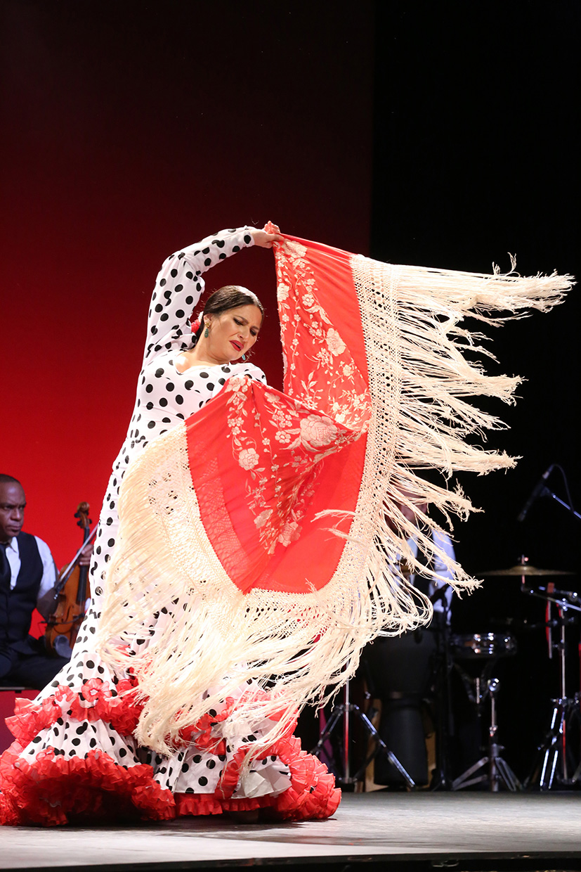 Carmen Amaya ha inspirado la Colección Crucero de Dior que se presentó el pasado mes de julio en Sevilla y ahora este espectáculo SANGRE, donde Karime Amaya muestra su arte su número con un asombroso baile con bata de cola que termina con pantalones.