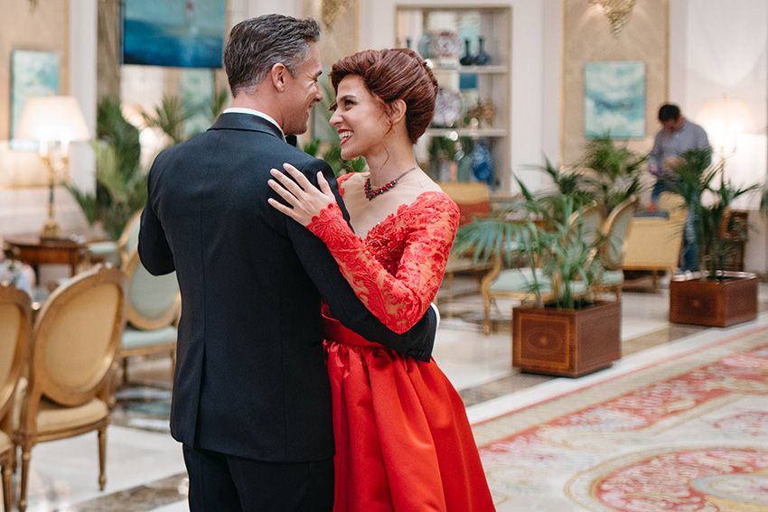 Recepcionados por el director del Hotel Beverly Wilshire, el Señor Thompson, (haciendo las veces del director del Hotel Palace) hemos asistido a la presentación de Edward y Vivian, interpretados por Cristina Llorente y Roger Berruezo. Tras su llegada como huéspedes del hotel, con posado en la fachada del Palace, el director musical, Arnau Vilà, nos ha acompañado al piano con la famosa canción Oh Pretty Woman, hasta el hall principal, donde se ha desarrollado la rueda de prensa.
