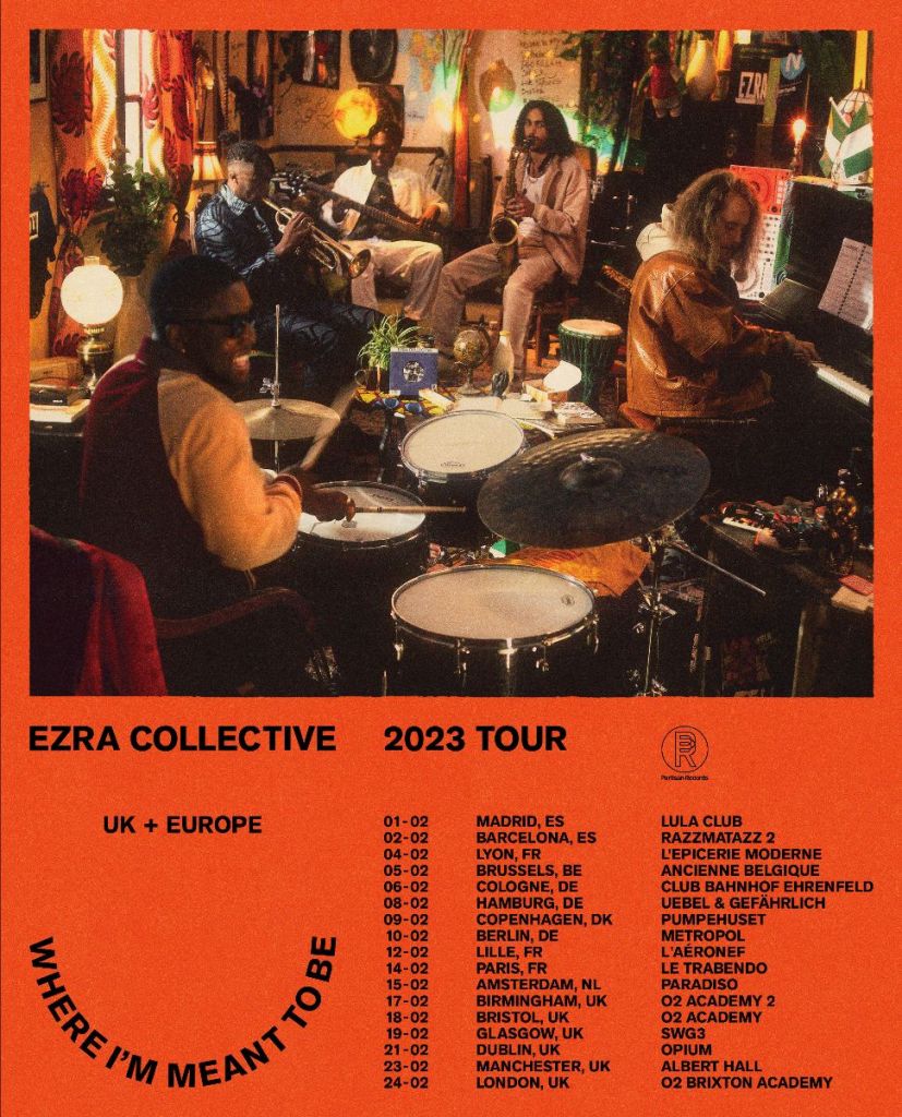 El grupo londinense Ezra Collective, uno de los principales agitadores de la rica escena jazz de la capital británica, lanzó el viernes pasado su segundo álbum, «Where I’m Meant To Be» con Partisan Records. El nuevo disco es una celebración de la vida, una elevación en el sinuoso sonido híbrido de Ezra Collective y su refinado carácter colectivo. Las canciones combinan su confianza frívola con su energía brillante. Lleno de conversaciones de llamada y respuesta entre sus componentes, un producto natural de años de improvisación juntos en el escenario, el álbum -en el que también participan Sampa The Great, Kojey Radical, Emile Sande y Nao- iluminará las pistas de baile y pondrá banda sonora a las cenas de verano en igual medida.