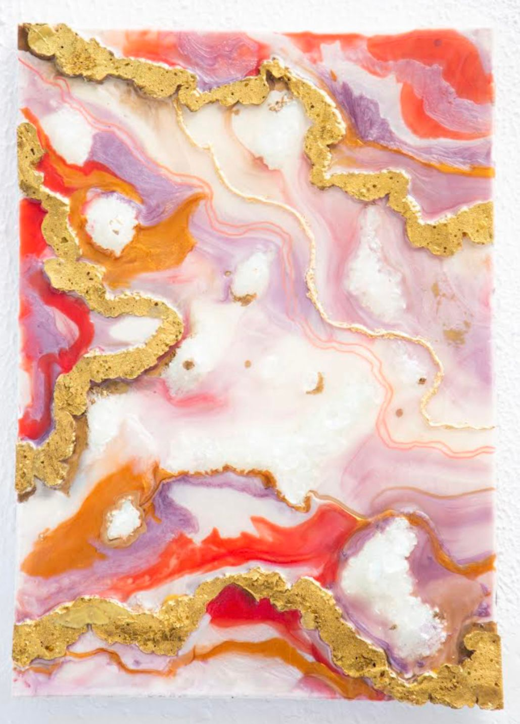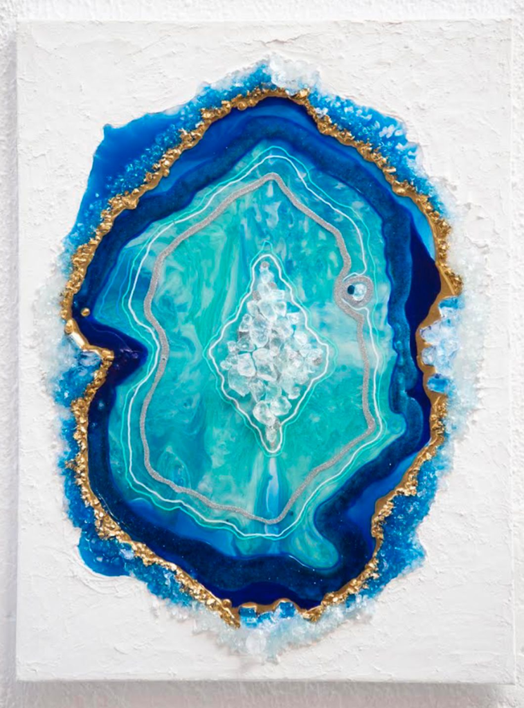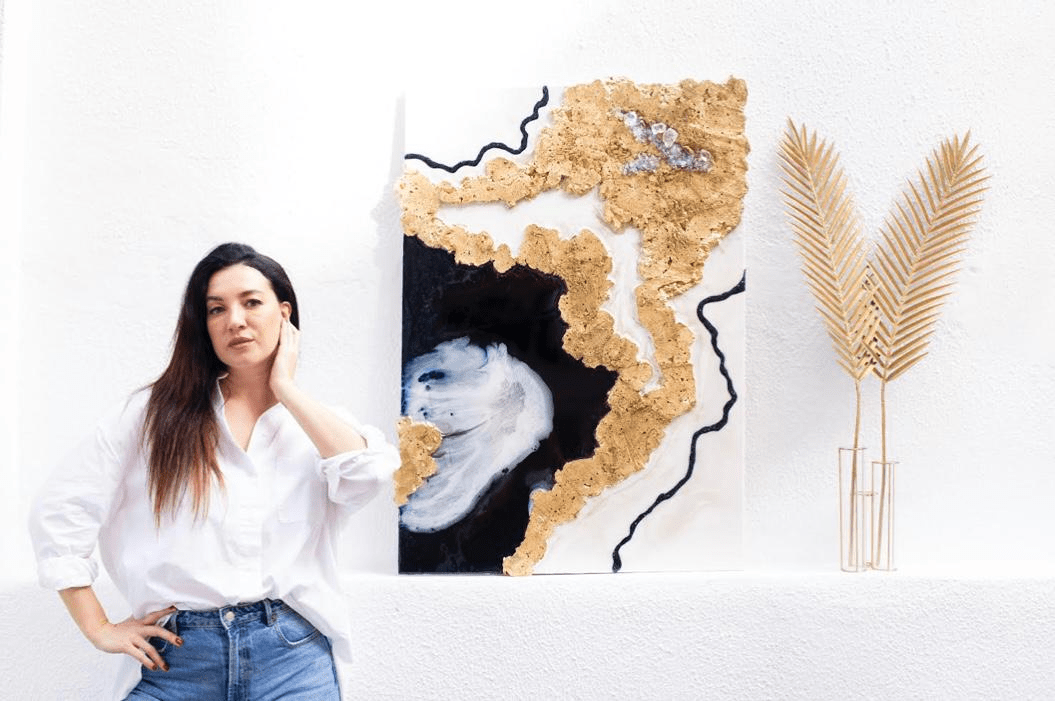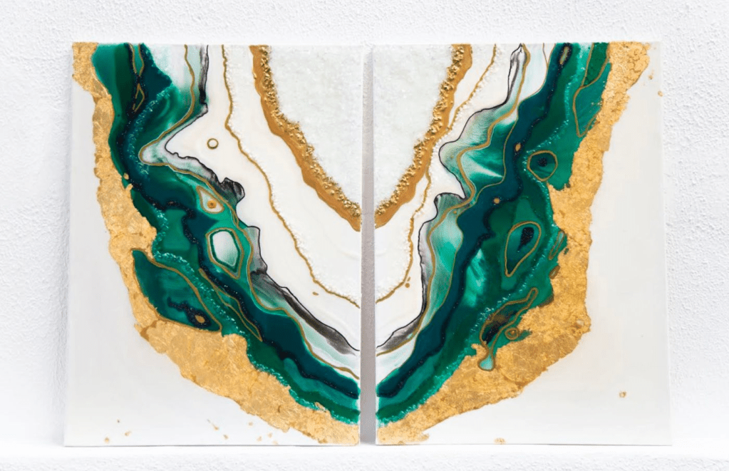 En sus propias palabras nos explica “ La resina es difícil e impredecible y justo esto la hace emocionante. Aunque siempre tengo una idea de lo que quiero expresar en el lienzo y hacer exactamente lo que planeé, hay un elemento intrigante en dejar que la resina se desarrolle en el lienzo dejando que fluya. A veces me despierto en medio de la noche para correr y ver qué patrón, figura y encajes se crearon.”