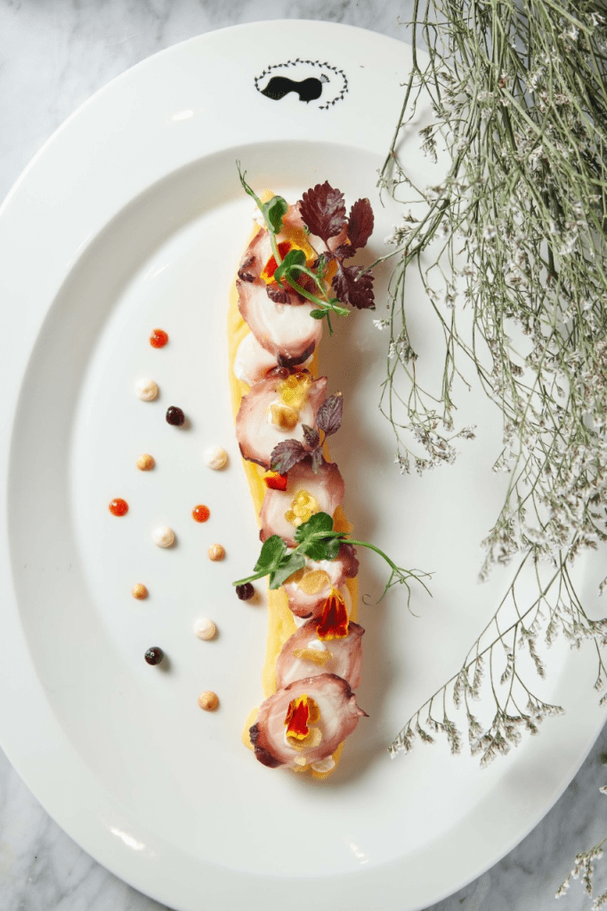 Al frente de la propuesta gastronómica está el chef Dani Padró formado en la prestigiosa escuela Hoffman de Barcelona y curtido en diversos restaurantes con estrella Michelin en Francia y España y también en hoteles en diferentes países. La carta del restaurante principal de inspiración internacional es sin duda una apuesta por los sabores más delicados y las carnes, pescados y mariscos más sabrosos del mercado. Empezando por sus ostras de Normandía o su caviar Oscietra, entre los entrantes conviene señalar, el ceviche de corvina, el carpaccio de Wagyu, el tiradito de de ventresca de atún Bluefin , el tartar de gamba roja o las vieras a la plancha. De los principales el solomillo de vaca vieja, el cochinillo confitado, los cubos de atún fresco de la Almadraba o el rodaballo asado. Y entre los postres maridados con cocteles a voluntad destacan el tiramisú , la tarta de queso artesanal o la torre de fresas con nata y oro.