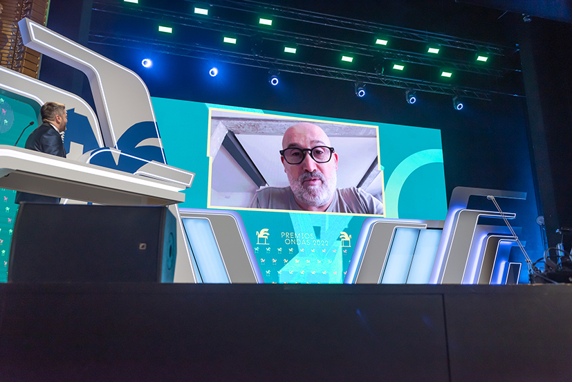 Javier Cámara, ganador del Ondas por «Vota Juan» no pudo estar presente en la gala pero mostró su humor característico con una de las frases de la noche “Españoles, Juan Carrasco ha muerto”. ©M.J López Photographer