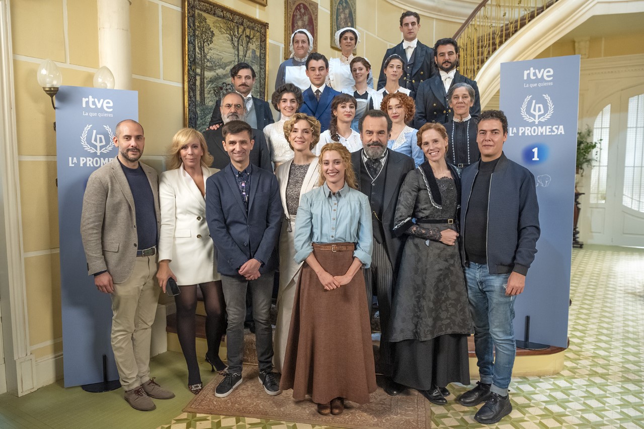 Con la presencia al completo del reparto, hoy se ha presentado esta ambiciosa producción ambientada en 1913 en los estudios donde se graba la serie. El director de Cine y Ficción de TVE, José Pastor, ha calificado ‘La promesa’ de “serie diaria premium”. “Nuestra intención era hacer una serie diaria, pero con valores de serie premium. Tiene unos decorados de 3.000 metros cuadrados, un arte y vestuario espectacular. Hemos aumentado el número de secuencias que suelen tener estas series. Hemos hecho una apuesta por elevar el perfil”, ha explicado. Según Pastor, “no tenemos ningún perfil de esta serie en la oferta televisiva y las series de toda la vida son las que mejor funcionan. Ésta es fresca e innovadora”.