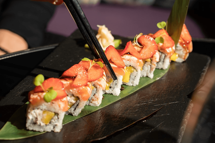 Pero les éxito de la propuesta viene también de su cuidada carta en la que destacan platos muy sabrosos y bien elaborados como la ensalada de langostinos, el lingote de foie, el steak tartar, los huevos rotos con fricandó, el arroz “del señoret”, el risotto de trufa negra y parmesano, la suprema de lubina salvaje, el pulpo a la brasa o el entrecot Nebraska fileteado. Platos que se han convertido en clásicos inmediatos y que la clientela repite. La oferta se completa con una deslumbrante oferta de sushi en forma de creativos uramakis, niguiris y sashimi, y termina con una variedad de postres de creación propia como el Tacón Rouge o el Suelo de Chocolate Blanco.