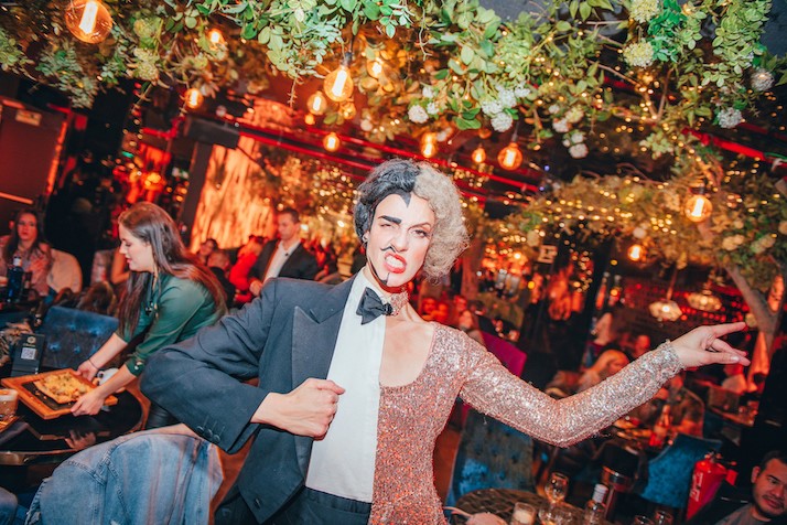 El equipo de Futur 2 y Estrella Salietti ha diseñado un espacio singular y lleno de encanto que nos transporta a un frondoso jardín interior de gran formato, rodeado de cristaleras capaces de recrear la luz diurna que se funde junto a la vegetación. Mientras la planta de calle es capaz de pasar de un ambiente diurno y muy llamativo a otro más tenue y acogedor para el horario de noche gracias a sus efectos lumínicos, la planta de abajo tiene una decoración más urbana de tonos fríos que contrasta con sus sofisticados sofás dorados o sus falsas cortinas rojas. Un escenario glamuroso para pasar la noche escuchando los últimos hits de la música latina, urban y pop, en la mejor compañía de la ciudad.