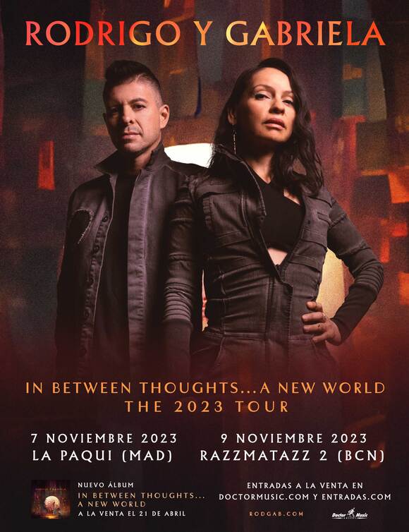 El dúo ganador de un Grammy, Rodrigo y Gabriela, actuará el 7 de noviembre en la sala La Paqui de Madrid y el 9 de noviembre en Razzmatazz 2 en Barcelona con motivo de su gira ‘In Between Thoughts…A New World Tour 2023’.