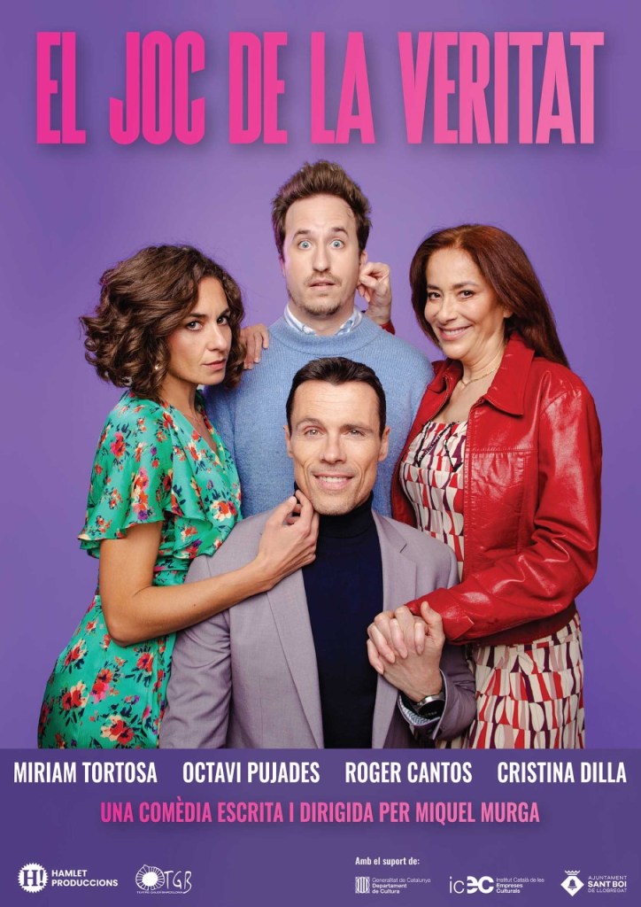 El proper 25 de maig tindrà lloc al Teatre Gaudí Barcelona l’estrena d’EL JOC DE LA VERITAT, una comèdia escrita i dirigida per Miquel Murga, i interpretada per Octavi Pujades (El Guardaespaldas, Orgasmos, la comedia, Oh, Mami!), Míriam Tortosa (Escape Room, Animals de companyia, Likes), Cristina Dilla (Las otras, Surf, Por el amor de Dios) i Roger Cantos (La millor nit de la teva vida, Només un anunci, Lab Canal: Argelès-sur-Mer).