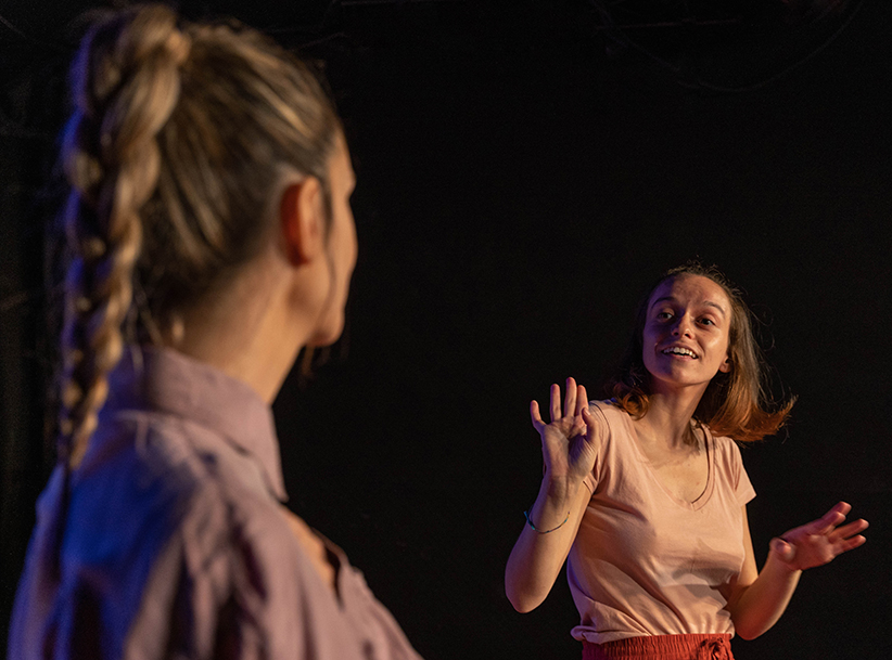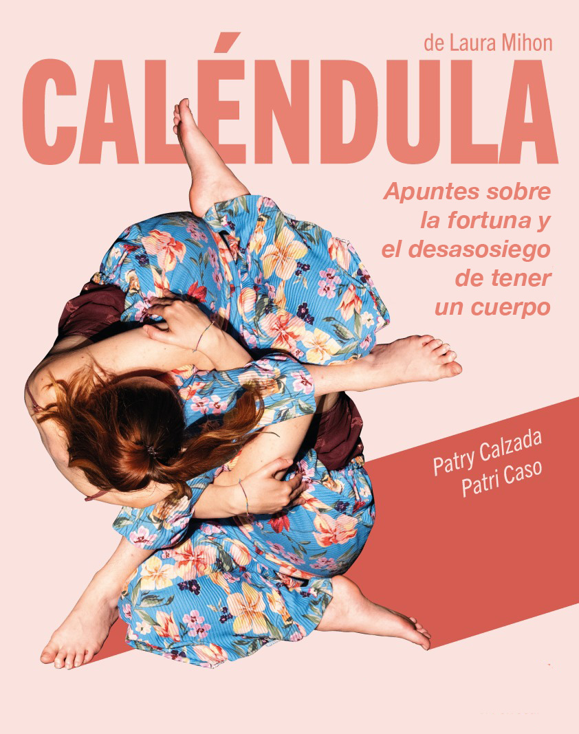 En CALÉNDULA, protagonizada por dos actrices Patry Calzada y Patri Caso que calientan como si el público no estuviera en la sala. La autora se ha convertido en un pdf y no quiere tener un cuerpo. En un futuro, una de las actrices cumplirá 40 años y ya no querrá salir de la cama.
