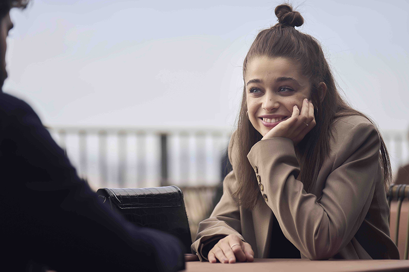 ABI Y MURALL: Abi (Belén Cuesta) queda perpleja cuando su match de Tinder, Murall (Iván Massagué), le asegura que está «atrapado en el tiempo», al estilo de Bill Murray, y que solo podrá salir del bucle si su cita va bien.