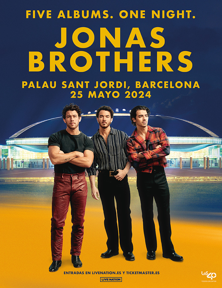 Jonas Brothers anuncian nuevas fechas de su gira mundial THE TOUR: FIVE ALBUMS. ONE NIGHT, con una única parada en España: el 25 de mayo en el Palau Sant Jordi de Barcelona. En esta nueva etapa, el grupo actuará por primera vez en Polonia, Austria, República Checa, Irlanda del Norte, Hamburgo, Lyon, Múnich, Noruega, Australia y Nueva Zelanda. La banda también ha revelado una colosal ampliación de su gira más ambiciosa en Norteamérica con 26 nuevos conciertos, posicionándola como su mayor gira hasta la fecha con 90 actuaciones en 20 países. Consultar aquí.