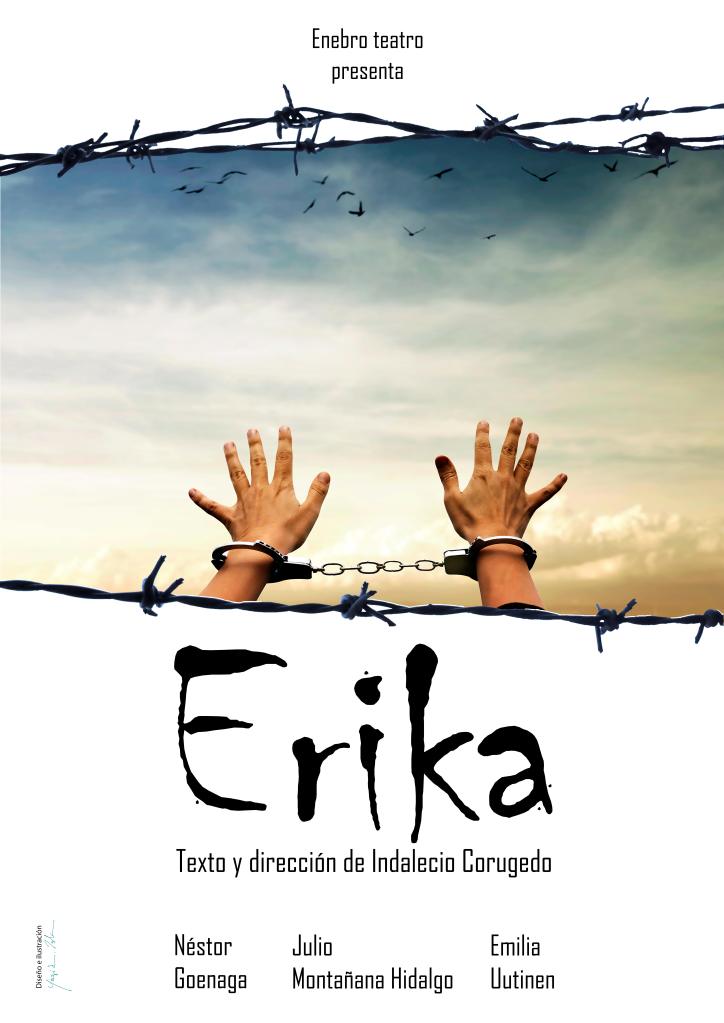 El pensamiento y la palabra de Federico García Lorca frente al pensamiento y la palabra de la extrema derecha europea. Eso es «ERIKA», texto y dirección de Indalecio Corugedo, con Néstor Goenaga, Julio Montañana Hidalgo y Emilia Uutinen.