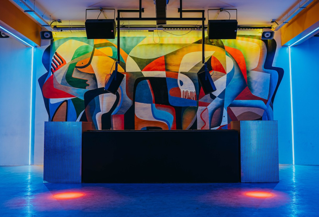 Junto a las intervenciones de Santana en el exterior y Play In Colors en el interior, la Gallery Room funcionará como galería de arte, lo que la convertirá en una sala en evolución permanente que se transformará dos veces al año. Para la inauguración, la artista berlinesa afincada en Málaga Conxi Sane ha intervenido la sala con un mural sobre la cabina del DJ y una muestra de su arte cubista.