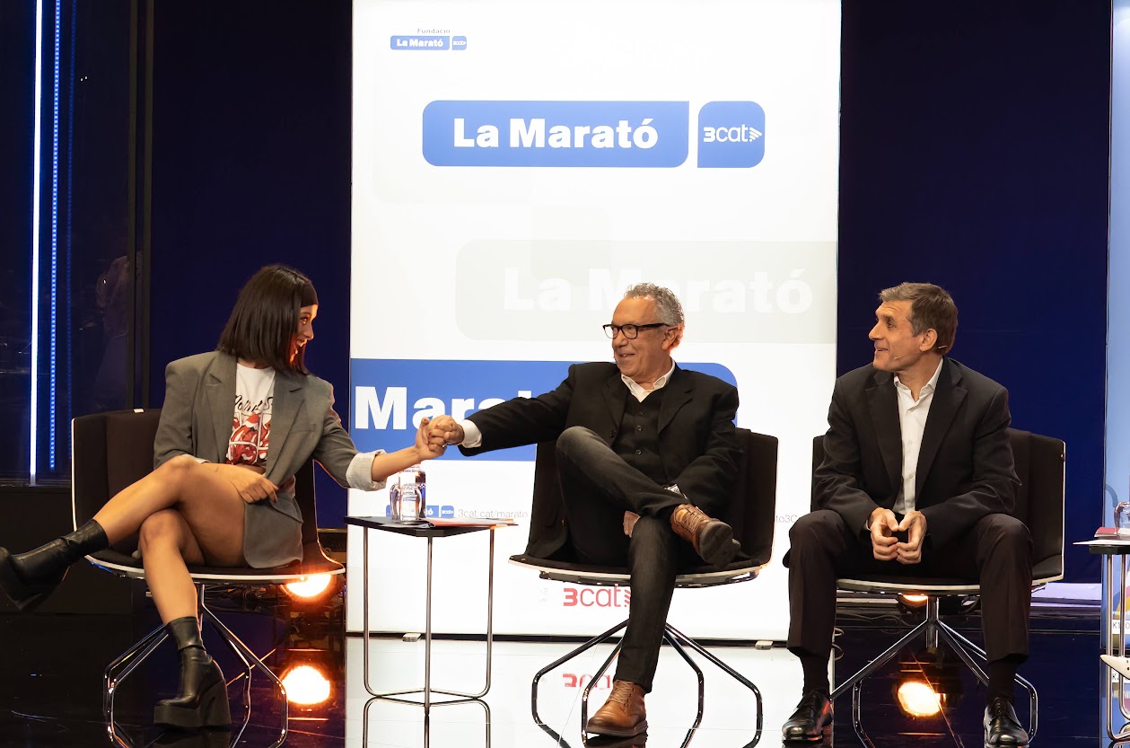 A continuació, ha pres la paraula Àngel Lacalle, director del disc de La Marató, que ha fet un agraïment a tothom qui ha participat al disc en tots aquests anys i ha destacat les dues grans novetats d’aquesta edició. “Enguany, per primera vegada, quan comprem el disc amb el diari es podrà descarregar. És a dir, pel mateix preu, hi haurà format físic i digital, acompanyat del so immersiu 360 graus Dolby Atmos, que s’adapta a qualsevol aparell”, ha explicat Lacalle. I ha afegit: “Aquest any probablement és el disc més diferent que hem fet, lligat amb el tema de La Marató, parlem de dones, i també d’homes, i de la visió dels joves, que és importantíssima. En aquest sentit, per projectar la riquesa musical que tenim, hem incorporat artistes joves i cançons d’èxit que tenen projecció arreu”.