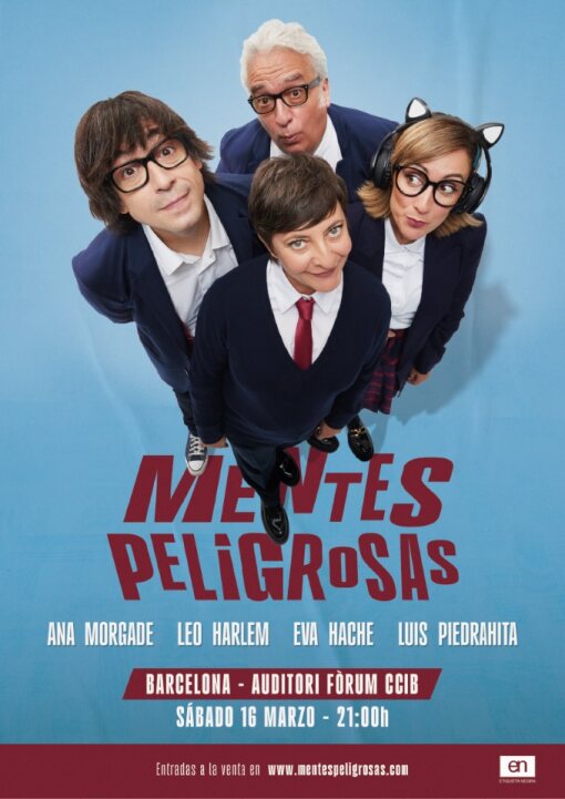 Mentes Peligrosas, un nuevo espectáculo de humor llega al Auditori Fòrum CCIB de Barcelona el sábado 16 de marzo a las 21:00h. con Eva Hache, Ana Morgade, Leo Harlem y Luis Piedrahita.