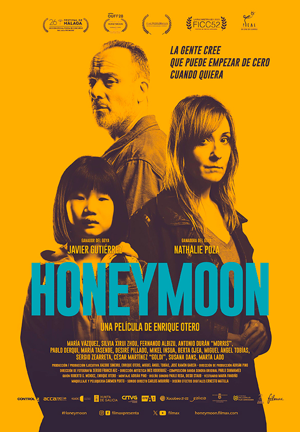 Tras su paso por el Festival de Málaga (fuera de concurso) y el Ourense Film Festival, donde consiguió el Premio del Público y la Mejor Interpretación para la actriz principal, «HONEYMOON», protagonizada por Javier Gutiérrez y Nathalie Poza, se estrena el próximo 12 de enero en cines.