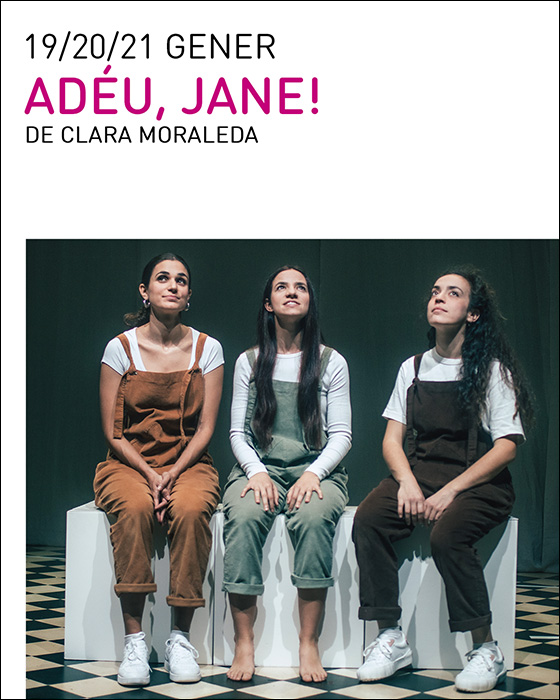 Nominada als Premis Butaca 2023 com a Millor espectacle de petit format i guanyadora dels Premis Xarxa Alcover i del Millor Espectacle per a joves a la Mostra d’Igualada 2023, Adéu, Jane! és una obra basada en la història real de l’autora, Clara Moraleda, –i inspirada en tantes d’altres–, però també un espai per reflexionar sobre els perills de la pressió estètica i la importància de l’acceptació i estima pròpies. Un homenatge a tots els nostres pits: estimar-los no ens hauria de suposar tants esforços.