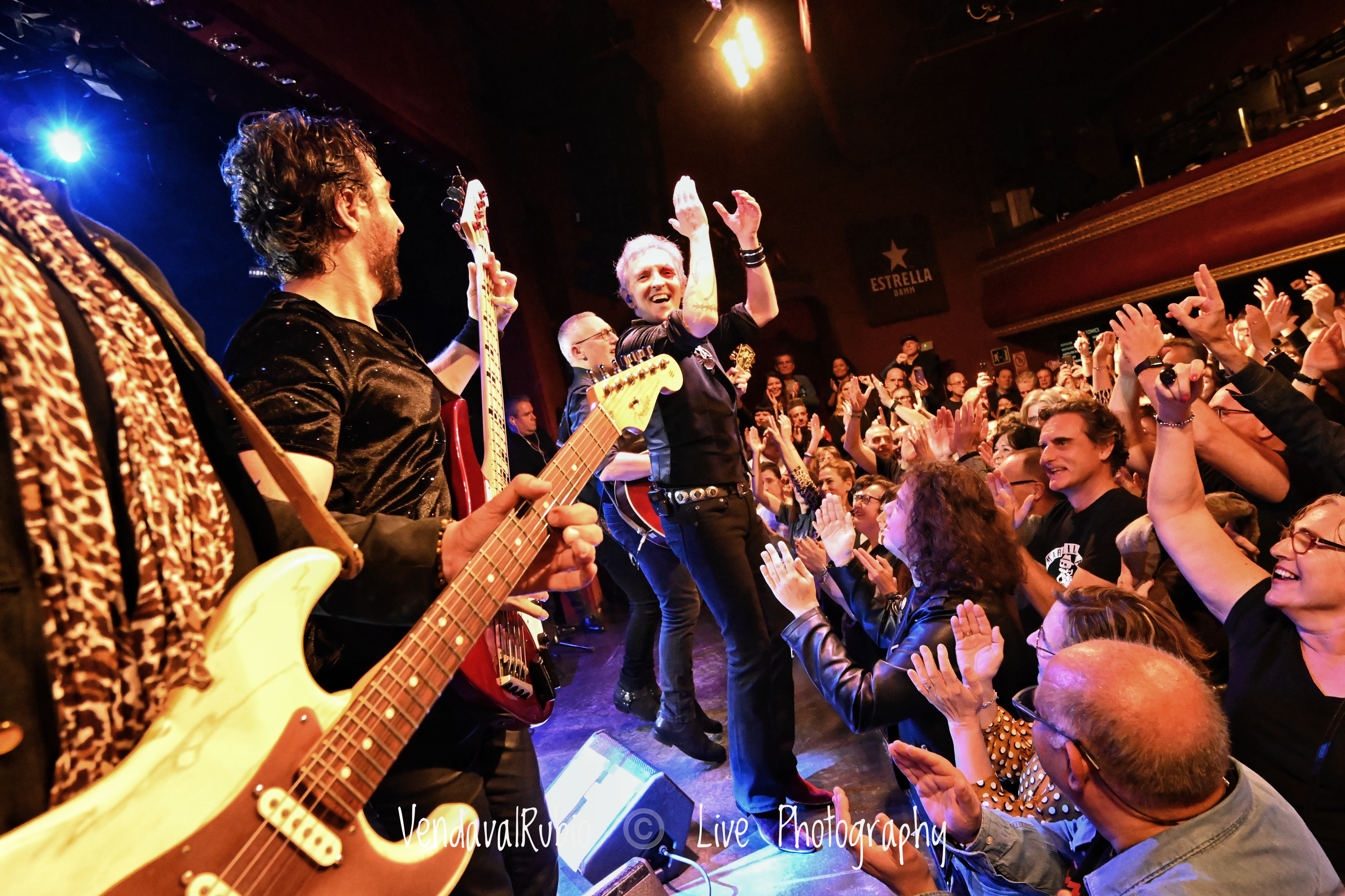 Prometía mucha pasión la velada y ni defraudó ni dejó a nadie indiferente. La banda se hizo reina de la noche y nos llevó a los mejores senderos del Rocknroll y callejeamos por los grandes temas del compositor, entre luchas de mástiles, corros de las guitarras y el bajo, haciendo grandes honores a la siempre imprescindible batería. Avenencia, camaradería e interacciones entre cuerdas de electrocasters, bajo y española, muchos saltos, brincos y sobretodo cantar a todo pulmón al compás de un exultante Ramoncín que estuvo absolutamente soberbio y demostró estar en muy buena forma a todos los niveles. Un Frontman increíble con una verborrea siempre certera y con una pasión rebosante agradecía la bienvenida y el acogimiento cálido en forma de un sin parar de choque de puños, entrelazadas de manos y muchos cruces de miradas y sonrisas de punta a punta del escenario.