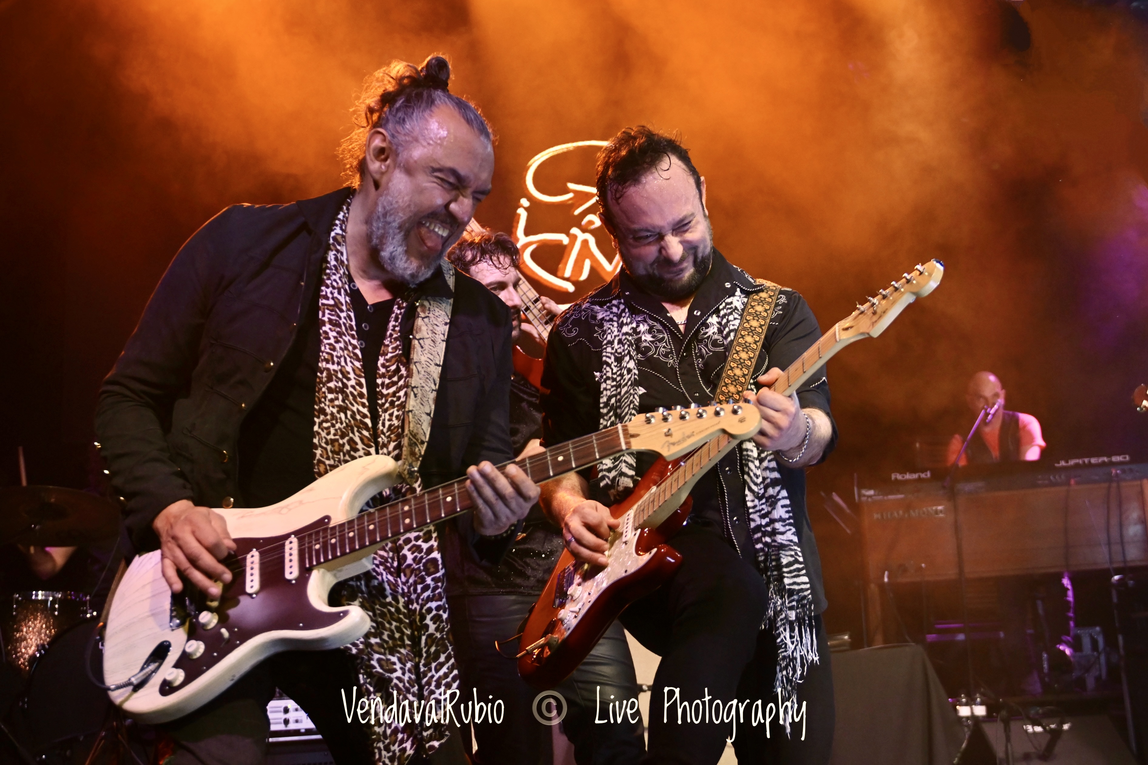 Lustrados mástiles, palos y teclados, salieron a darlo todo y resultó una maravillosa y vibrante exhibición de música en directo. Voz, guitarras, teclados y batería jugando y ejecutando en excelente armonía y sintonía. Pudimos ver y sentir la mejor versión de ellos mismos. Pletóricos los siete magníficos: Gabriel Abril, Guss Martin, Danny, Carlos , Jesús Varas.