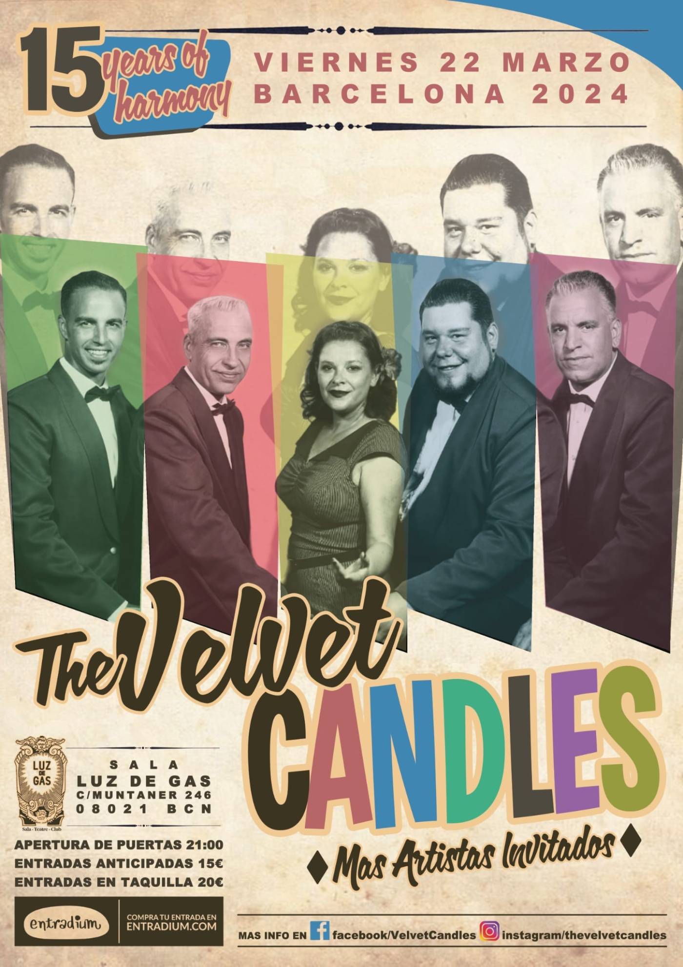 El próximo viernes 22 de marzo a partir de las 20:30 horas, el renombrado grupo The Velvet Candles marcará una ocasión muy especial con la celebración de su 15 aniversario en la prestigiosa Sala Luz de Gas de Barcelona.