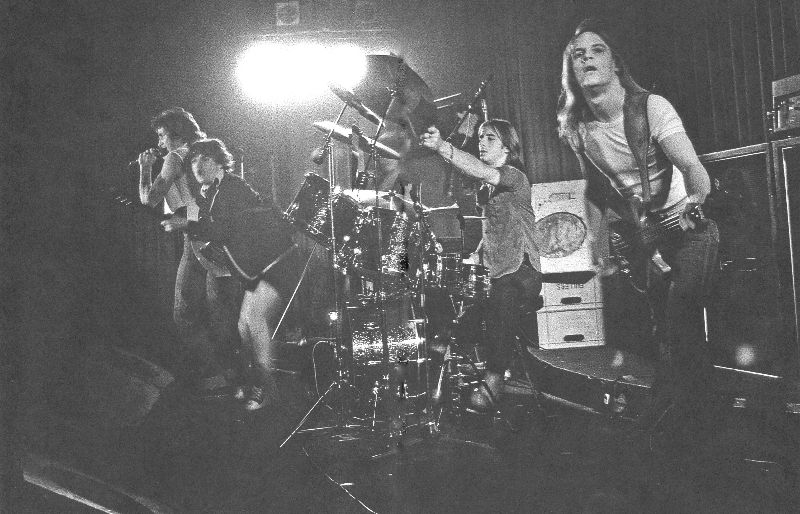 Corre el mes de marzo de 1975. Mark Evans entra en un bar para echarle un ojo a un grupo… y su vida cambia para siempre: en cuestión de días, da su primer concierto como bajista de AC/DC. Una semana después, llega el salto a la televisión nacional junto a Angus Young –inefable guitarrista con nombre de res (escocesa) enfundado en su uniforme escolar– y al cantante de raíces también caledonias Bon Scott, quien, ataviado para la ocasión, luce peluca de colegiala con trenzas enhiestas y declama –cual verraco en matanza– mientras se fuma cuanto tiene a su alcance.
