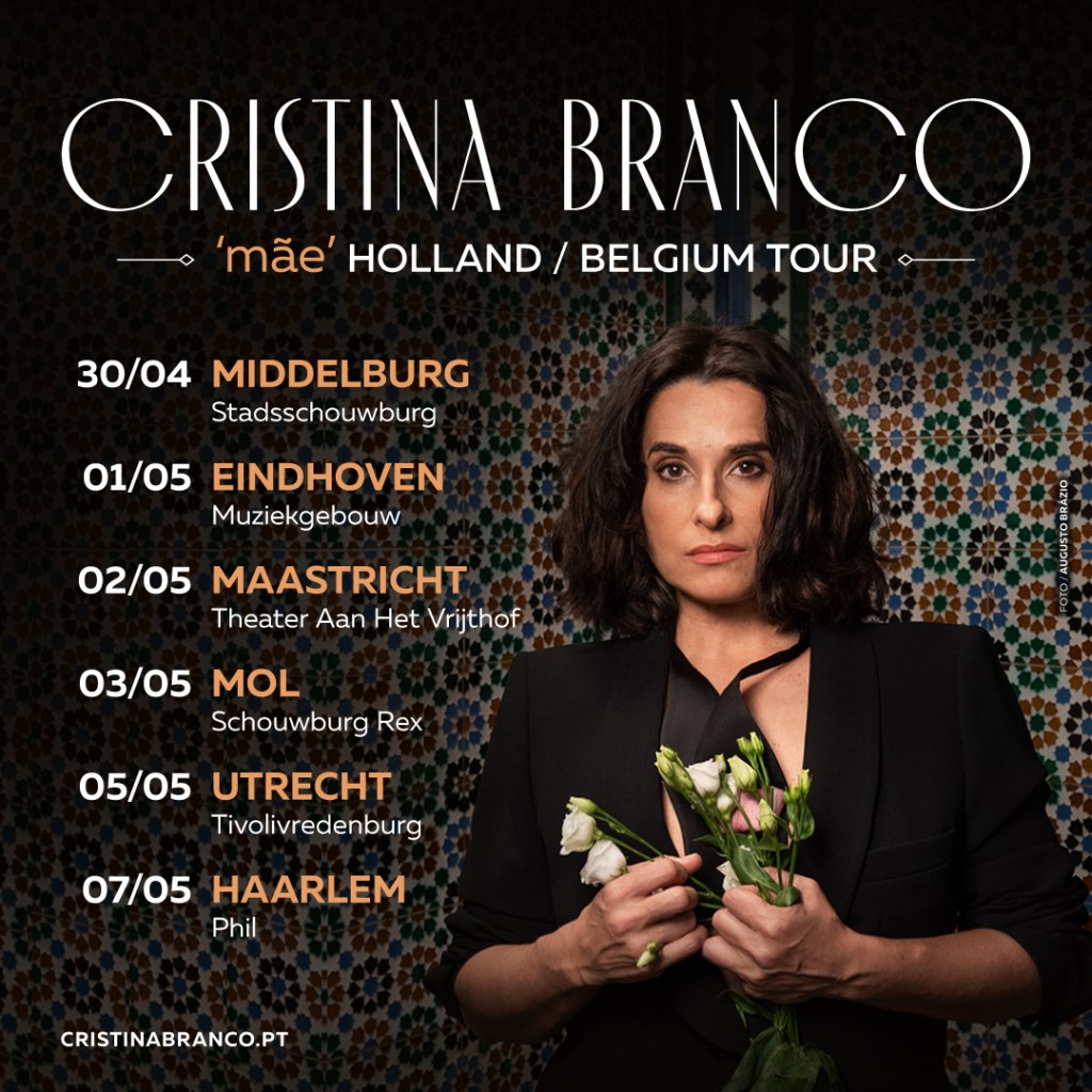After Bogotá, Lima, Santiago de Chile, Buenos Aires, Rio de Janeiro, Porto, Lisbon, Paris, Bordeaux, Zurich, Ljubljana, Hamburg, among many other cities, Cristina Branco is now presenting her beautiful concert «Mãe» – her latest album – in Holland and Belgium.