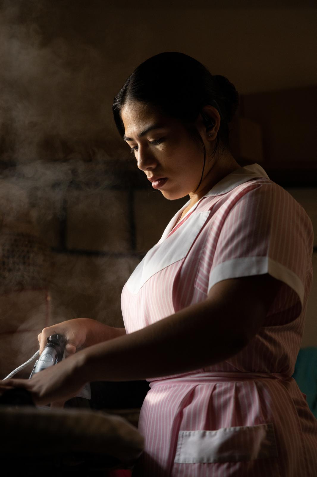 Es un trabajo muy habitual. Cuando llegas y emigras, el trabajo que más sale es el de limpiadora o de cuidar a ancianos. Además, mi abuela había trabajado de limpiadora durante toda su vida y cuando llegó aquí fue el primer trabajo que tuvo. Por ello la tuve como referente en mi personaje, ya que también se tenía que quedar “calladita”. Incluso aporté mi propia experiencia, ya que para pagarme la carrera estuve trabajando en la hostelería. Además, también me documenté sobre lo que habían vivido diferentes mujeres.