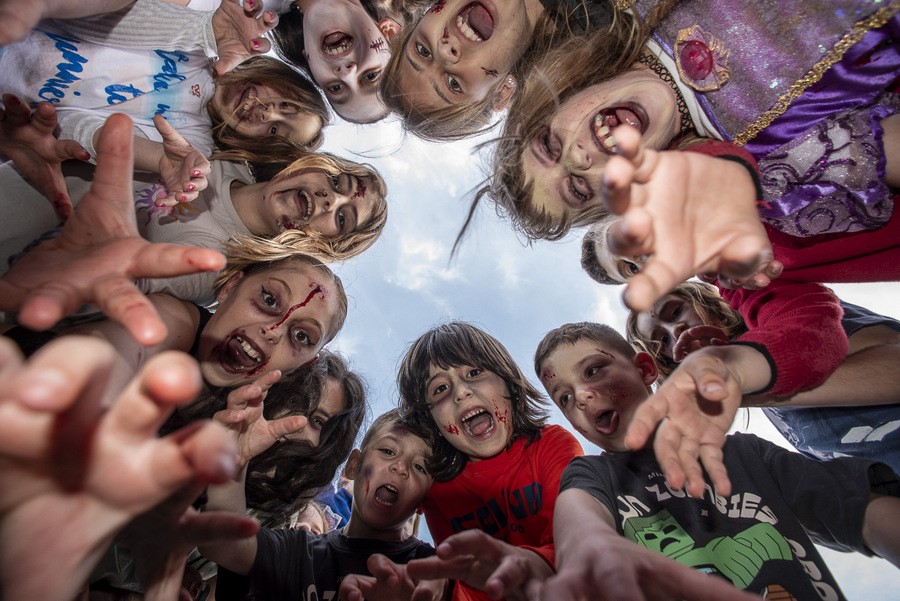 Ara bé, ahir no es tractava d’això, sinó que el què es volia fer era aconseguir formar un veritable exèrcit de zombies raonablement realistes, per passar una estona entretinguda i divertida. I el cert és que els resultats van ser molt efectius, tant com perquè arribés a fer una mica de basarda mirar-se de prop la transformació d’una persona fins a esdevenir zombie.