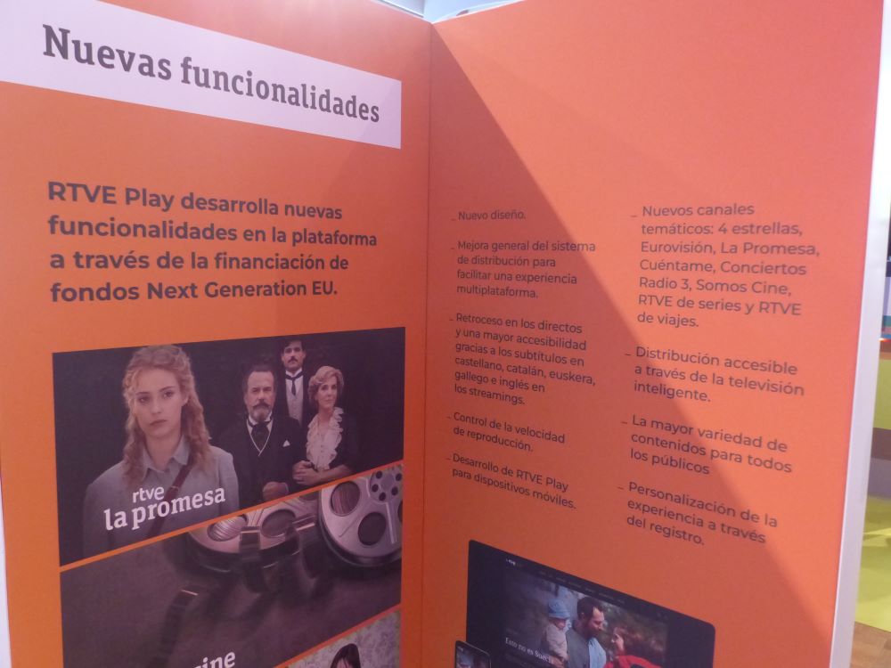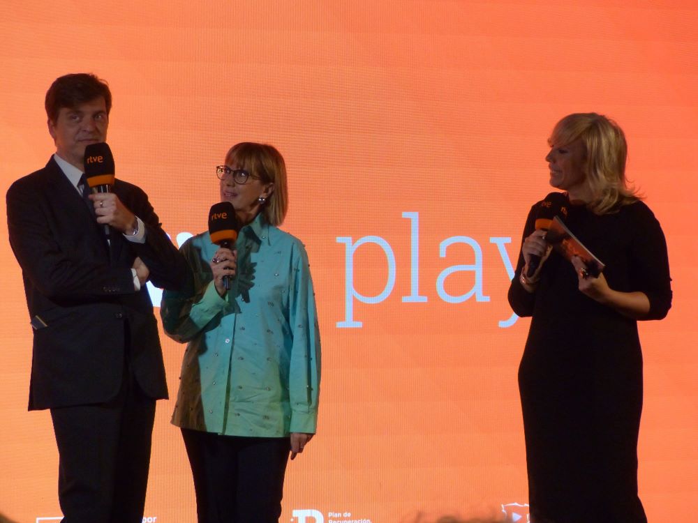 María Eizaguirre va detallar els sets dels programes que es poden visitar i interactuar a la mostra, com ‘La promesa’, ‘L’altaveu’, ‘Saber y Ganar’, ‘Cafè d’idees’ i l’ascensor de ‘LateXou’, i va remarcar que l’oferta de RTVE Play «és molt competitiva i com solem dir, no és que sigui gratis, és que no té preu».