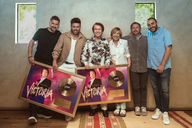 En una tarde como las muchas que compartieron charlando y creando “Victoria”, Raphael y Pablo han recibido el Disco de Oro por las ventas del álbum en España.