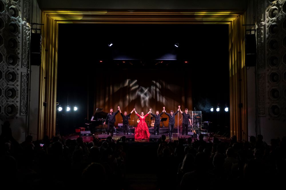 De nuevo con el quinteto a pleno rendimiento, sorprende con la parsimonia y ligereza de una “Sodade” en la que las tres guitarras solean por turnos, mientras Pontes baila con su sempiterna sonrisa dibujada en el rostro, antes de dar réplica a la base rítmica con un peculiar scat en el que caben el susurro y la onomatopeya dislocada, y en el que muestra su faceta más experimental, que la distingue en el universo de la música portuguesa desde hace años. Con “Meu amor sem Aranjuez”, su adaptación del “Concierto de Aranjuez” del Maestro Rodrigo, recibe la mayor ovación de la noche con el personal en pie y se emociona hasta las lágrimas. “Cançao do mar”, su tema más popular, con su reconocible estribillo instrumental, fue entonado por la mayoría y mostró su vertiente más pop. Fue el preludio de un bis en el que volvimos al fado con “Lágrima” antes de la festiva “Laurindinha”, apoteósico cierre que dejó una estela de satisfacción y asombro entre los afortunados asistentes a la velada.