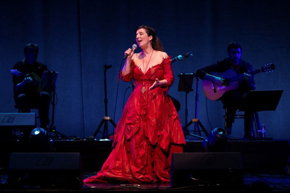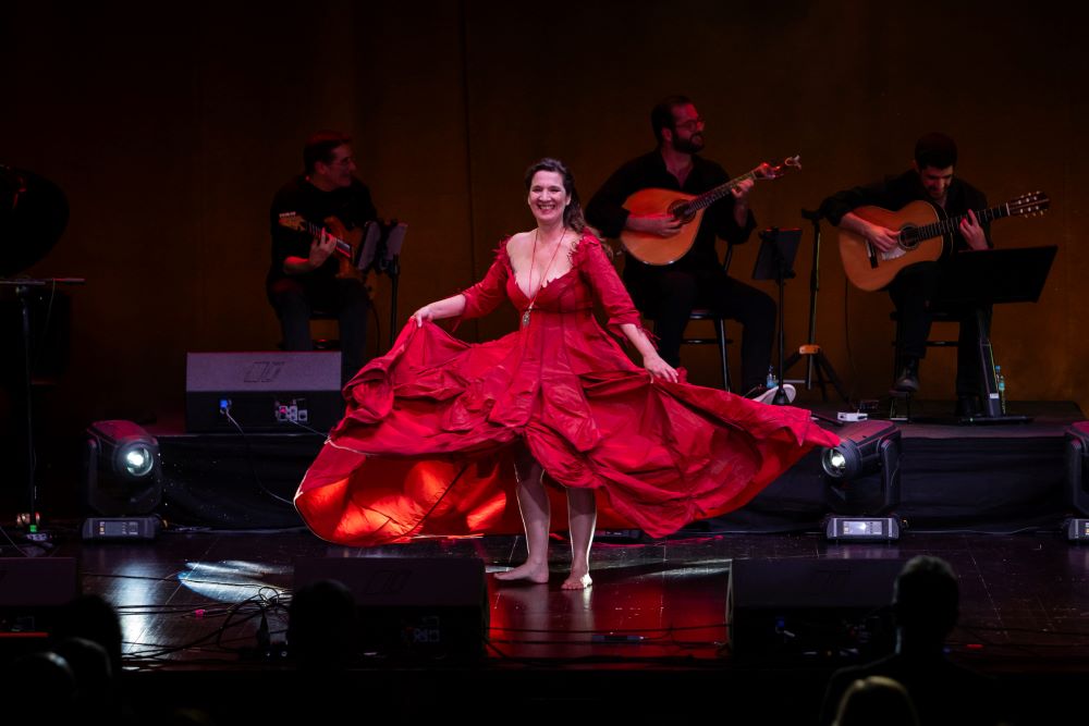 Empezó sola bajo los focos, acompañándose al piano en “A minha barquinha” con una sencilla melodía. Desde el primer segundo del recital pudimos apreciar su exquisita modulación, su imponente proyección y su virtuosismo en la zona aguda de una tesitura vocal ultraterrena. Sentada frente al teclado, continúa con “La bohemia”, que interpreta en español, y con «Ondeia», una composición en la impresionan tanto su melisma como su control interpretativo.