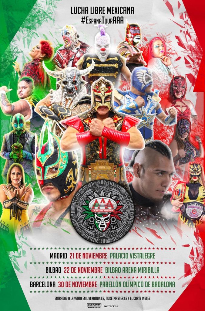 La prestigiosa liga de Lucha Libre AAA Worldwide anuncia su llegada a España por primera vez en la historia con 3 espectáculos este otoño: 21 de noviembre en el Palacio Vistalegre de Madrid, 22 de noviembre en el Bilbao Arena Miribilla de Bilbao y el 30 de noviembre en el Olimpic Arena de Badalona (Barcelona).