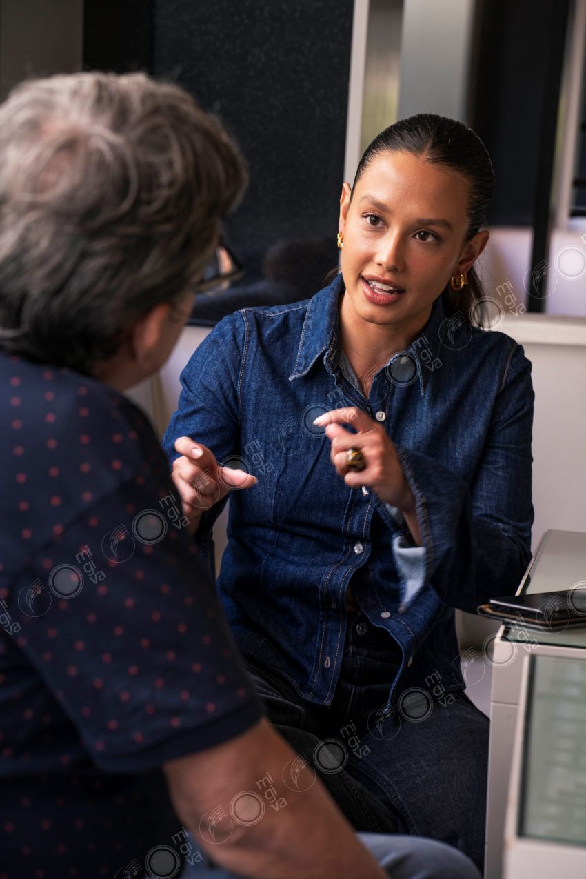 Me ayudó especialmente en los detalles técnicos. Y lo que más me sorprendía era que cuando me tocaba estar en silencio, me daban más nervios que las otras escenas y me dijo, “pues al revés, a mí me encantan, son mis favoritas,”