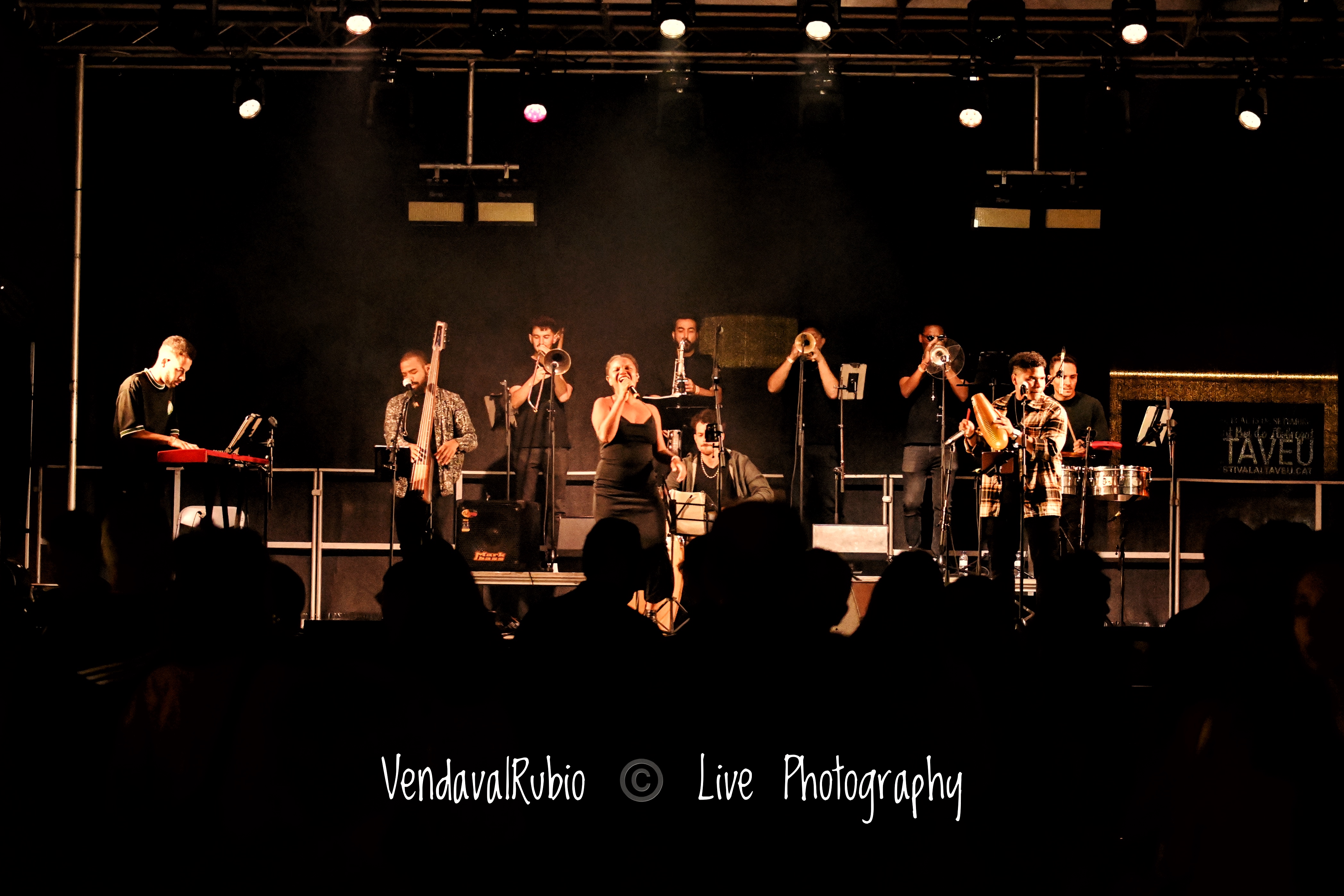 Puntuals, sortien a l’escenari Tarquim (Pau Vidal) i tota la seva banda que formen una gran orquestra capaçde fusionar la salsa, el son, la timba i el latin jazz en uns temes que junt a la seva execució i interpretació a l’escenari esdevenen una autèntica festa plena d’alegria, energia i molta positivitat. Nou músics, dos veus i una destacable secció de vents, on en Pau n’és un dels protagonistes amb el seu domini de la flauta i el saxofó. Són sinònim de festa. Molt d’art desplegat al voltant de la prodigiosa veu de la que en aquesta ocasió estava acompanyada en alguns dels temes perTots plegats han fet aixecar a la gent que omplia la Plaça de per ballar i somriure al ritme de les seves cançons. Enhorabona Altaveu per aquesta diversitat i per portar grans talents