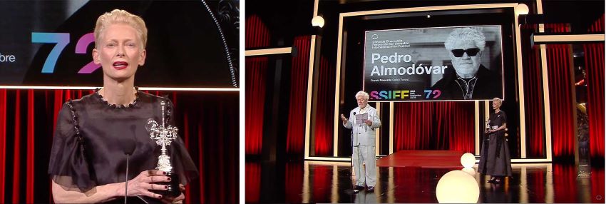 El cineasta Pedro Almodóvar ha recibido este jueves de manos de la actriz Tilda Swinton el segundo Premio Donostia de la 72ª edición del Festival de San Sebastián en el Auditorio Kursaal, donde ha realizado una encendida defensa de la libertad, en la ficción y en la realidad, 44 años después de debutar en la sección Nuevos Realizadores. Al término de la ceremonia se ha proyectado The Room Next Door / La habitación de al lado, película ganadora del León de Oro de la Mostra de Venecia.