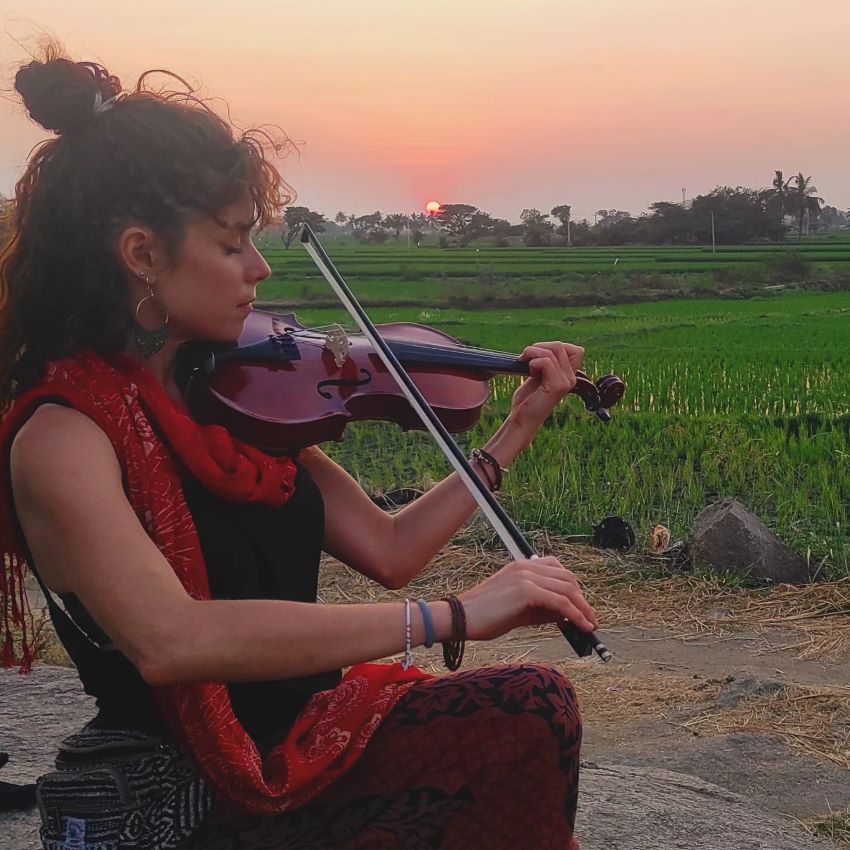 El violín ha sido una de los constantes en mi vida. Desde los ocho años que empecé nunca ha dejado de acompañarme. El violín además es un instrumento que para tocarlo lo has de apoyar en el hombro y en la zona del corazón y siempre que lo toco, su vibración me transforma. Además no concibo el viajar sin mi instrumento porque es un lenguaje universal y una manera de conectar con las personas.