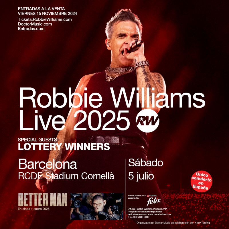 Robbie Williams anunciaba esta semana su esperada gira para 2025. Un nuevo tour del que podremos disfrutar también en nuestro país. ‘Robbie Williams Live 2025’ tendrá parada el sábado 5 de julio en el RCDE Stadium de Cornellà, Barcelona, en el que será su único concierto en España.