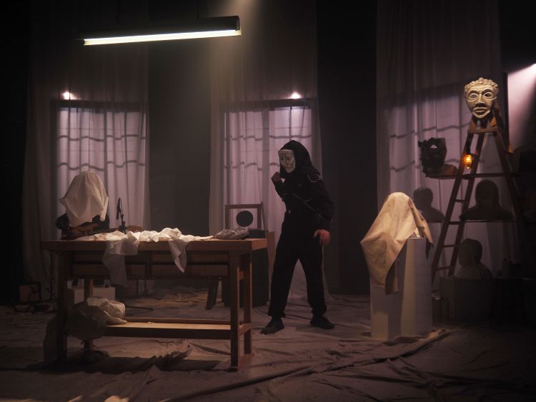 El muntatge, doncs, es desenvolupa en dues trames en paral·lel. D’una banda, la narració del mite de Prósopo, en què els personatges mitològics són encarnats amb màscares per Arnau Comas. De l’altra, el viatge intern que fa el dramaturg en descobrir el mite. La funció s’acompanya de l’espai sonor i la música en directe de Santiago Aguilera.