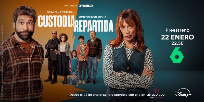 laSexta preestrenará los dos primeros episodios de ‘Custodia repartida’, la nueva serie original de Disney+, el próximo miércoles 22 de enero (22:45 horas). Este lanzamiento en abierto supone un paso más allá en la colaboración que mantiene Atresmedia TV con Disney+.