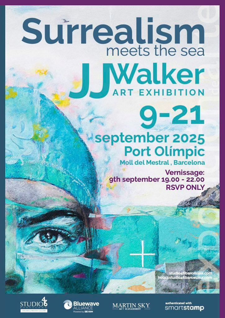 El próximo 9 de septiembre se inaugura la exposición individual !Surrealism Meets the Sea” del artista británico JJ Walker, comisariada por Martin Sky. La muestra, organizada por Studio 46 Barcelona y Martin Sky Art Management, en colaboración con Bluewave Alliance y con el apoyo de ISDIN, podrá visitarse hasta el 21 de septiembre en el Port Olímpic de Barcelona, que acoge así su primera ex- posición artística y abre una nueva etapa como espacio cultural de referencia