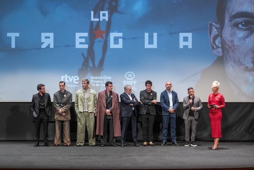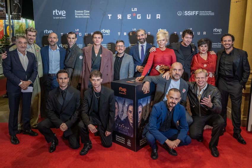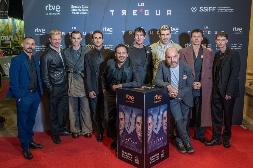 RTVE ha celebrado este jueves su cuarta y última gala en el Festival de Cine de San Sebastián, protagonizada por su película participada ‘La tregua’. El donostiarra Teatro Victoria Eugenia ha acogido el preestreno, arropado por un elenco estelar: Arón Piper, Javier Pereira, José Pastor y Fernando Valdivielso, junto al director Miguel Ángel Vivas y el productor César Benítez.